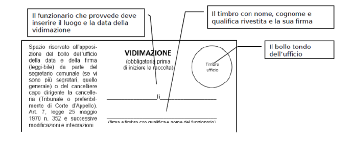 Vidimazione moduli proposta di legge di iniziativa popolare e referendum