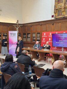 L’iniziativa è stata aperta dai saluti del Capo di Gabinetto del Sindaco, Maria Grazia Falciatore, ed è proseguita con i contributi di Riccardo Milanesi, docente di Transmedia Studies all’Università Sapienza di Roma, Giovanni Abitante, docente di Filmmaking AI alla Scuola Holden di Torino, Edoardo Fleischner, già docente di Comunicazione crossmediale all’Università degli Studi di Milano, e Filippo Gregoretti, artista generativo e docente di progettazione transmediale all’Università Suor Orsola Benincasa, di Napoli.