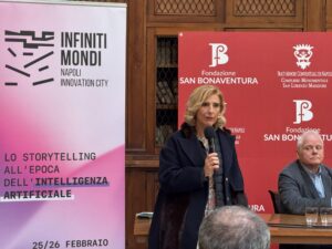 “La Casa delle Tecnologie Emergenti del Comune di Napoli –ha spiegato il capo di Gabinetto, Maria Grazia Falciatore– ha promesso questa iniziativa nella quale si sperimenta la narrazione attraverso l’intelligenza artificiale. L’iniziativa si concentra su un gruppo pilota di studenti dell’Accademia di Belle Arti che sono parte del progetto, ma intende riproporre la sperimentazione delle nuove tecnologie ad un pubblico più vasto legato al Comune di Napoli, ai suoi dipendenti, e al territorio. La scelta di tenere l’incontro a San Lorenzo Maggiore, inoltre, ha un valore molto forte perché sposa quello che è un aspetto centrale del programma di governo del sindaco Manfredi e cioè l’attenzione alla tradizione, all’identità e all’innovazione nell’ambito della quale gli spazi del patrimonio Centro storico Unesco si riempiono di contenuti e utilizzano tutte le tecnologie più interessanti per la manutenzione e la conservazione”.
