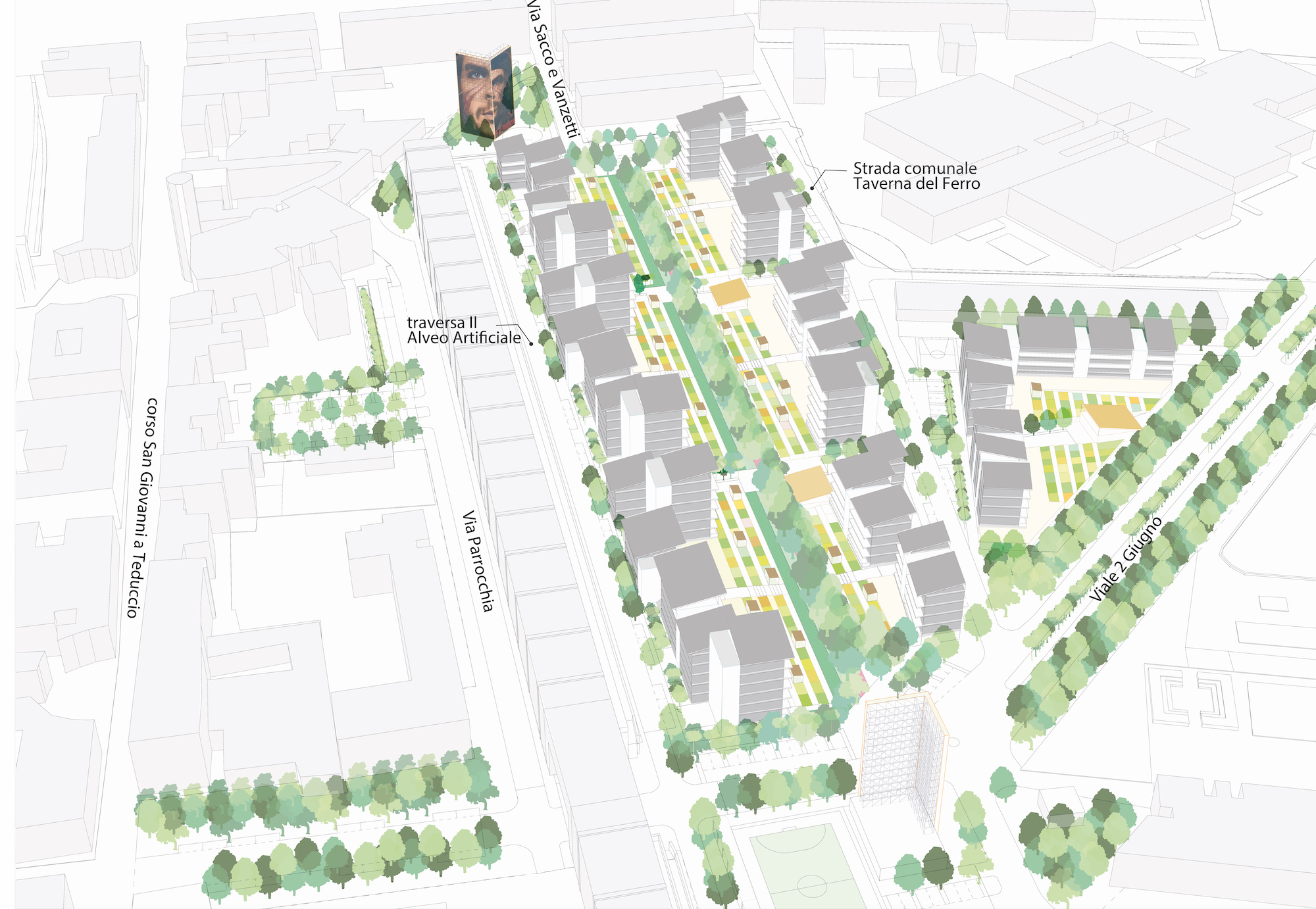 L’ambizioso obiettivo che si pone il progetto di riqualificazione è quello di superare le numerose criticità presenti nell’attuale configurazione dell’insediamento di Taverna del Ferro. In primis, il problema della notevole dimensione delle attuali “stecche” residenziali, caratterizzate da altezza e sviluppo longitudinale eccessivi, verrà affrontato attraverso una distribuzione degli spazi più equilibrata, con isolati che aggregano edifici di dimensioni più contenute, a scala umana. In parallelo, il progetto si concentra sulla mitigazione della forte introspezione reciproca tra gli appartamenti e la mancanza di privacy, causata dalla vicinanza eccessiva tra i due edifici attuali.