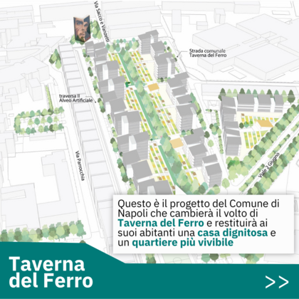 Il progetto di rigenerazione dell’insediamento di Taverna del Ferro a San Giovanni a Teduccio, proposto dal Comune di Napoli, mira a trasformare radicalmente l’area attraverso la demolizione delle due “stecche” residenziali esistenti e la creazione di 28 edifici bassi energeticamente autosufficienti.