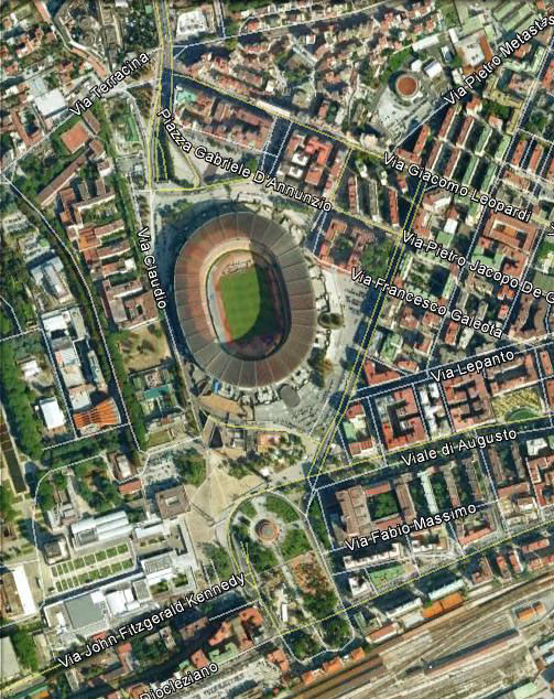 Il San Paolo non è l’unico stadio di grandi dimensioni posto in un contesto fortemente urbanizzato. Alcuni dei più famosi e grandi impianti del mondo sono situati all’interno delle città. Valgano per tutti il Santiago Bernabeu a Madrid e il Nou Camp a Barcellona o, ancora, il Maracanà a Rio de Janeiro, tutti abbondantemente sopra gli 80.000 posti a sedere.
