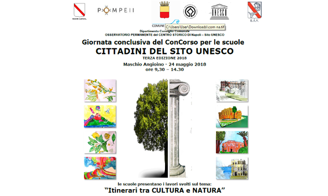 Il Concorso “Cittadini del sito UNESCO”, nella sua terza edizione ha coinvolto scuole medie inferiori e superiori incluse nei siti UNESCO di Napoli, Pompei, Ercolano e Torre Annunziata e loro buffer zone, per la diffusione dei valori e della cultura UNESCO nelle giovani generazioni. Lo scopo dell’iniziativa è stato quello di contribuire a sensibilizzare i giovani partecipanti in età scolare ai valori sedimentati nel proprio ambiente di vita.