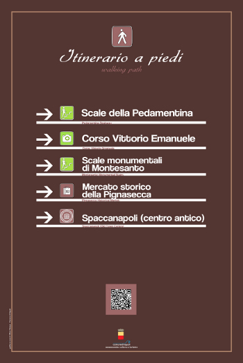 Di tutte le strade pedonali che scendono dal Vomero verso il centro della città, la Pedamentina è probabilmente una delle più antiche. Dal largo San Martino, antistante all’omonima Certosa, oggi Museo, scende attraverso una serie di rampe e tornanti fino a Corso Vittorio Emanuele, proseguendo idealmente per le scale di Montesanto offrendo una successione di scorci panoramici mozzafiato.