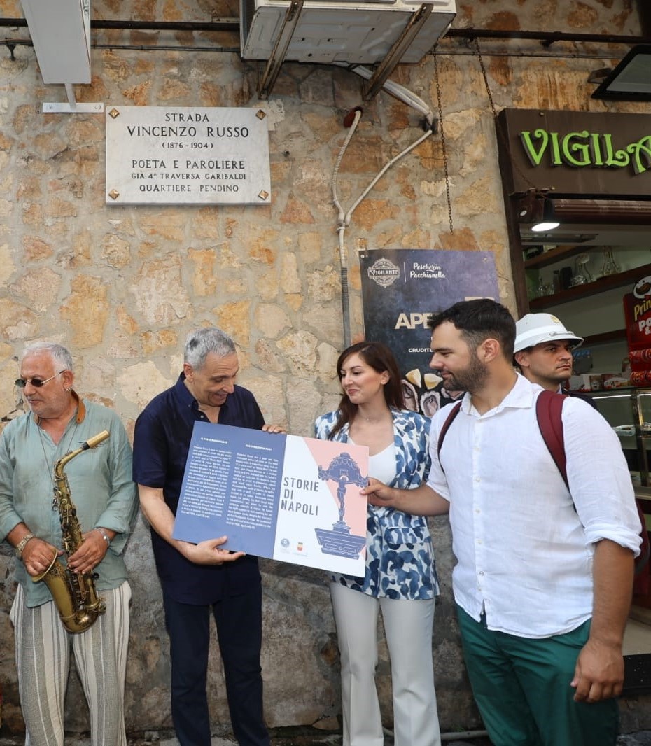 Sono fiera che questa intitolazione sia il risultato di un ordine del giorno che ho presentato in Consiglio comunale accogliendo la richiesta di Maurizio de Giovanni di ricordare un giovane figlio di Napoli, un talento troppo a lungo dimenticato nonostante siano merito suo alcune perle della canzone classica – ha affermato la vicepresidente del Consiglio comunale Flavia Sorrentino –. Ringrazio il sindaco Gaetano Manfredi, la vicesindaca Laura Lieto e il prefetto Michele Di Bari per aver portato a compimento l’iter dell’intitolazione perché la toponomastica cittadina è uno straordinario strumento di memoria e di rafforzamento dell’identità territoriale. La storia di Vincenzo Russo, da oggi, finalmente, sarà scolpita nella terra che gli ha dato i natali”.