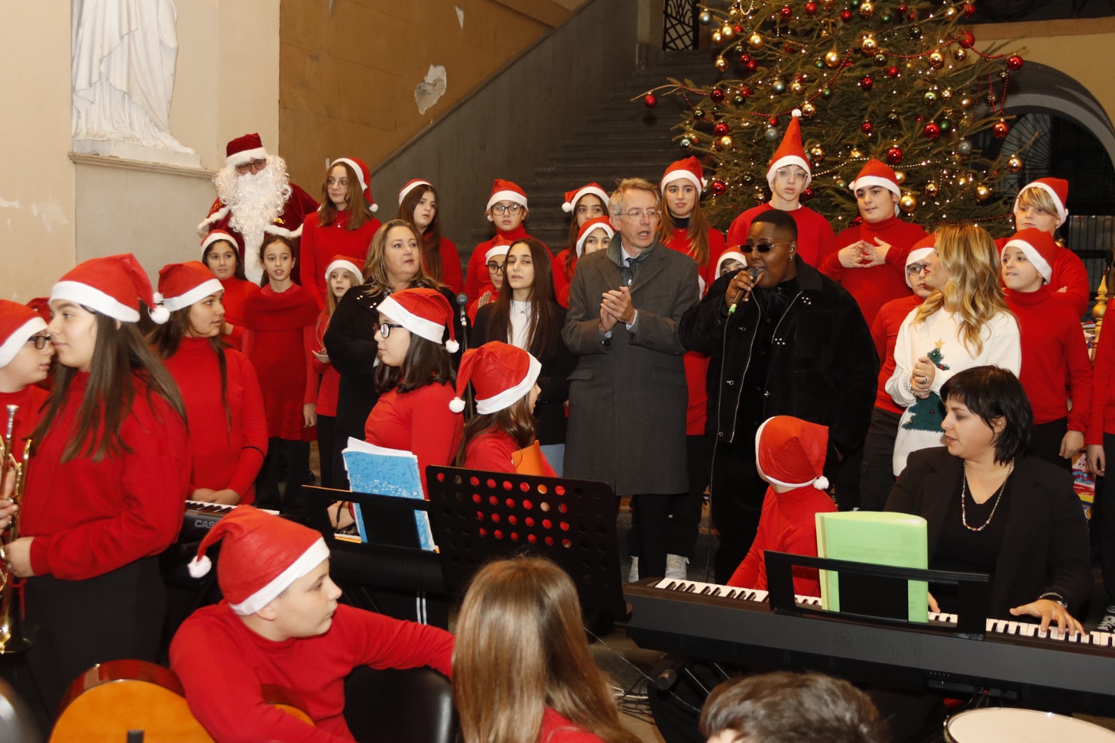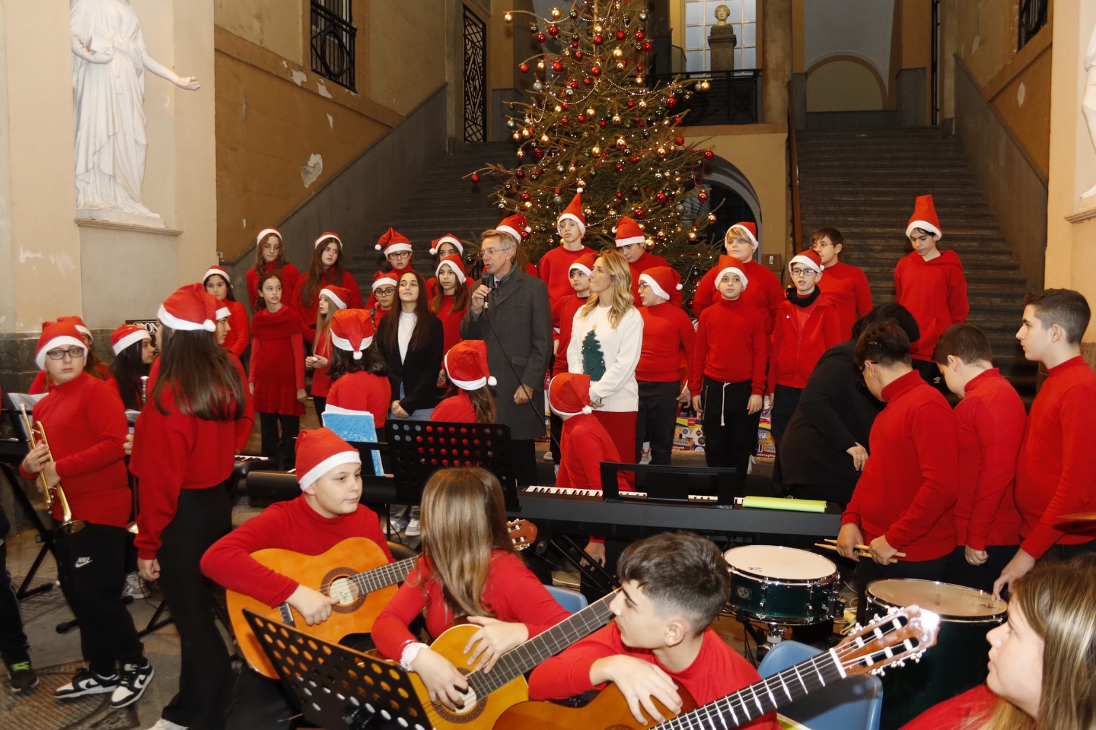 Il cortile di Palazzo San Giacomo si è trasformato per un pomeriggio nella casa di Babbo Natale, per un momento di festa con i tanti bambini che hanno ricevuto i pacchi dono raccolti attraverso il progetto “Giocattolo sospeso” promosso dall’Amministrazione comunale. Col sindaco Gaetano Manfredi, l’assessora alle Politiche giovanili e al Lavoro Chiara Marciani e gli altri assessori che hanno voluto condividere questa gioia, c’era anche la cantante Ste, ospite a sorpresa dell’iniziativa.