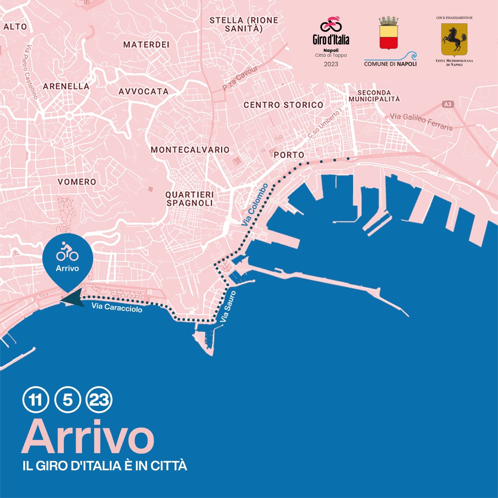 Il Giro arriverà a Napoli per la 46ª volta. In questa speciale graduatoria, Napoli è terza dopo Milano e Roma. La Napoli – Napoli 2023 sarà una gara breve ma intensa, con 162 km di percorso ed un dislivello di 2.800 metri.