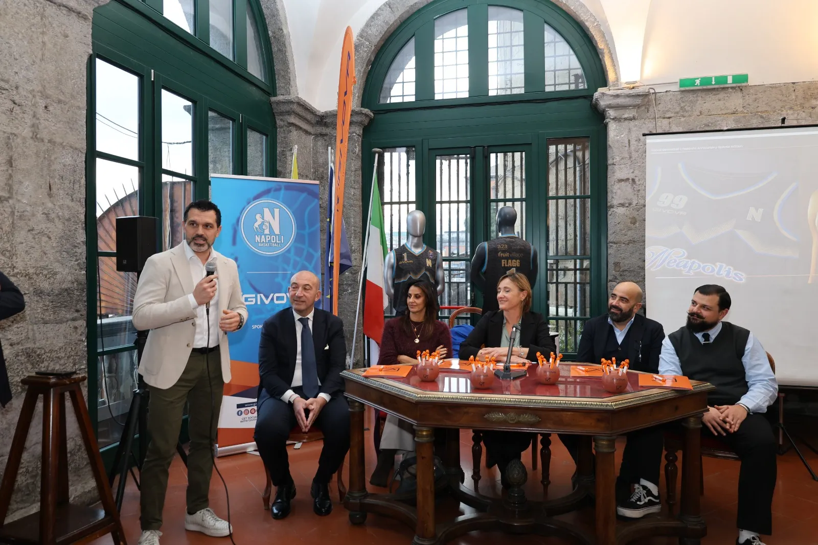 Alla presentazione sono intervenuti l’Assessore allo Sport del Comune di Napoli, Emanuela Ferrante, la Direttrice della Fondazione Santobono-Pausilipon, Flavia Matrisciano, il direttore marketing di Givova, Gennaro Cozzolino, e il Creative Director di Sport Media House, Fausto Della Villa. Per la compagine sportiva della Guerri Napoli erano presenti il Coach Alessandro Magro, il General Manager James Laughlin, il Direttore Sportivo Alessandro Di Fede e l’atleta Savion Flagg, testimonial d’eccezione della nuova divisa.