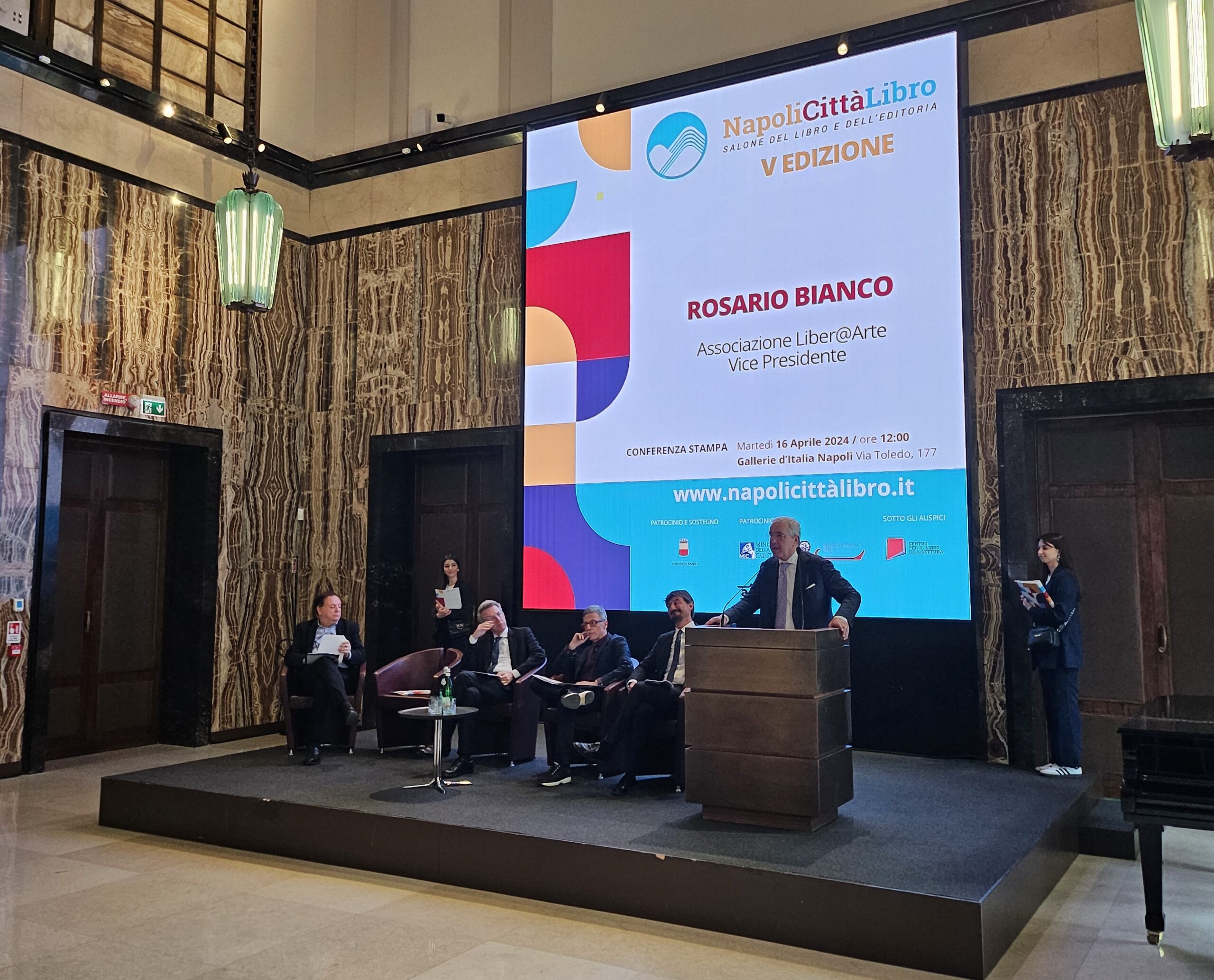 È stata presentata negli spazi delle Gallerie d’Italia – Napoli, in via Toledo, la V edizione di NapoliCittàLibro – Salone del Libro e dell’Editoria, organizzata dall’associazione Liber@Arte, promossa e sostenuta dal Comune di Napoli, con il patrocinio del Ministero della Cultura, della Camera di Commercio di Napoli, di Campania Legge - Fondazione Premio Napoli, di FAI Campania, di ACE Associazione Campana Editori e di ALI – Associazione Librai Italiani Confcommercio, sotto gli auspici del Centro per il Libro e la Lettura. All’incontro con la stampa hanno partecipato il Sindaco di Napoli Gaetano Manfredi, il coordinatore delle Politiche culturali del Comune di Napoli Sergio Locoratolo, il caporedattore centrale TGR Rai Campania Oreste Lo Pomo e gli editori Alessandro Polidoro e Rosario Bianco, presidente e vicepresidente associazione Liber@Arte