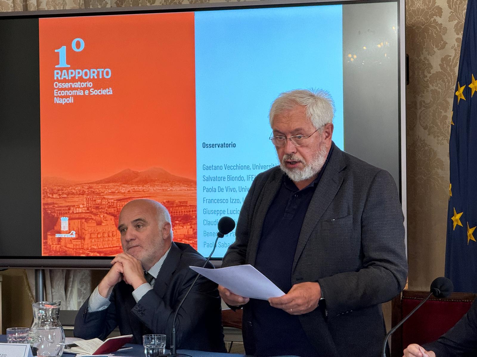 L’Osservatorio di Economia e Società della città di Napoli è stato costituito dal Comune su impulso del Sindaco Gaetano Manfredi e dell’Assessore al Bilancio Pier Paolo Baretta alla fine del 2023 con l’obiettivo di elaborare studi e analisi sulle principali dinamiche economiche e sociali della città. L’Osservatorio è coordinato da Gaetano Vecchione (Università Federico II) ed è composto da: Salvatore Biondo (IFEL), Paola De Vivo (Università Federico II), Giuseppe Lucio Gaeta (Università L’Orientale), Claudia Gargiulo (Comune di Napoli), Francesco Izzo (Università Vanvitelli), Benedetta Parenti (Università L’Orientale) e Paola Sabadin (Comune di Napoli). L’Osservatorio opera in sinergia l’Amministrazione comunale avvalendosi, inoltre, della collaborazione scientifica di SVIMEZ - Associazione per lo sviluppo dell’industria nel Mezzogiorno.