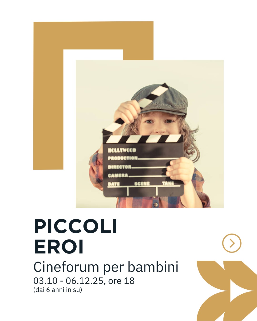 Ad aprire il programma autunnale della manifestazione, dal 3 ottobre, sarà la rassegna cinematografica "Piccoli Eroi" : un ciclo di proiezioni gratuite rivolto a bambini dai 6 anni in su, per vivere un’esperienza all’insegna della magia, della creatività e del divertimento. Gli appuntamenti si terranno ogni giovedì, dalle 18:00 alle 20:00, con una selezione di film che parlano di coraggio, amicizia e immaginazione: