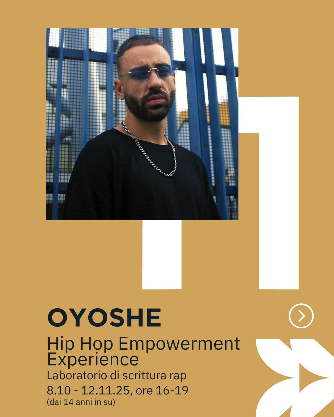 Spazio anche ai più grandi con il Laboratorio di Hip Hop Empowerment condotto da Vincenzo Musto, in arte Oyoshe, rapper e formatore attivo da oltre dieci anni nel campo dell’educazione attraverso la cultura Hip Hop. Il laboratorio, rivolto a ragazzi dai 14 anni in su, si terrà dall’8 ottobre al 12 novembre, ogni martedì dalle 16:00 alle 19:00. Durante gli incontri, i partecipanti saranno guidati alla scoperta del rap come strumento di espressione personale e narrazione, e sperimenteranno attività di scrittura, tecniche di improvvisazione, uso delle punchline, produzione musicale e registrazione vocale. Un’occasione unica per trasformare i pensieri e le esperienze in musica, scoprendo le potenzialità educative della cultura Hip Hop che, come racconta l’artista, getta “un ponte verso una comunicazione libera e non vincolata e stimola chiunque a sfruttare proprio le difficoltà rendendole punti forti”.