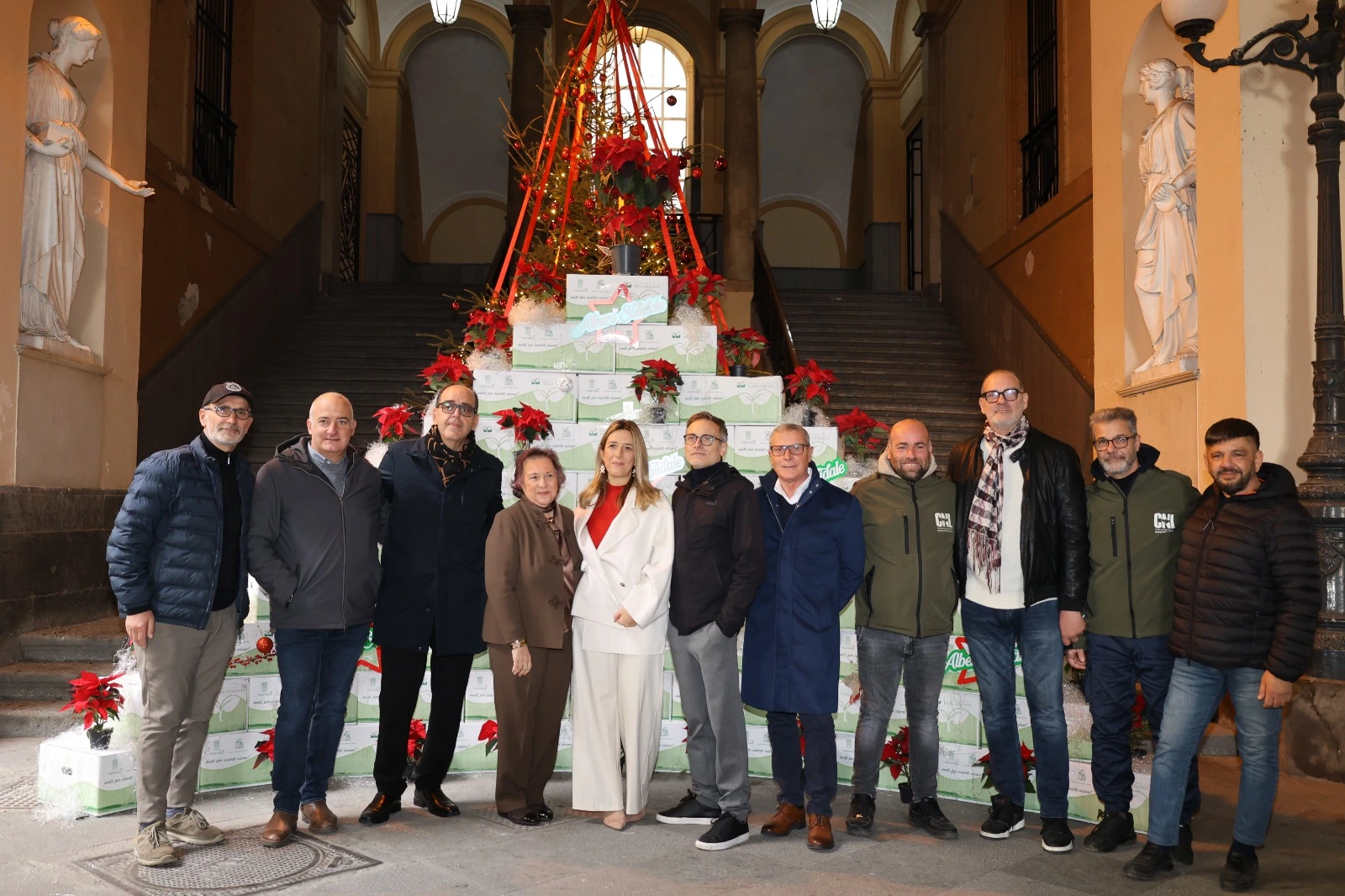 “Ringrazio il presidente Giordano e soprattutto le assessore Marciani e Armato per averci consentito di replicare il nostro ‘albero solidale’. Peraltro, quest’anno nei nostri kit – spiega il presidente CNL e Consorzio Terra Italiana Stefano Luciano – c’è anche una sorpresa in più. Non solo ortofrutta fresca, ma anche prodotti lavorati, come conserve e passate di pomodoro, donati dalla presidente della Cooperativa ‘L’uomo e il legno’ Rita Caprio, e realizzati nell’ambito dei laboratori con i detenuti del Carcere di Secondigliano”.