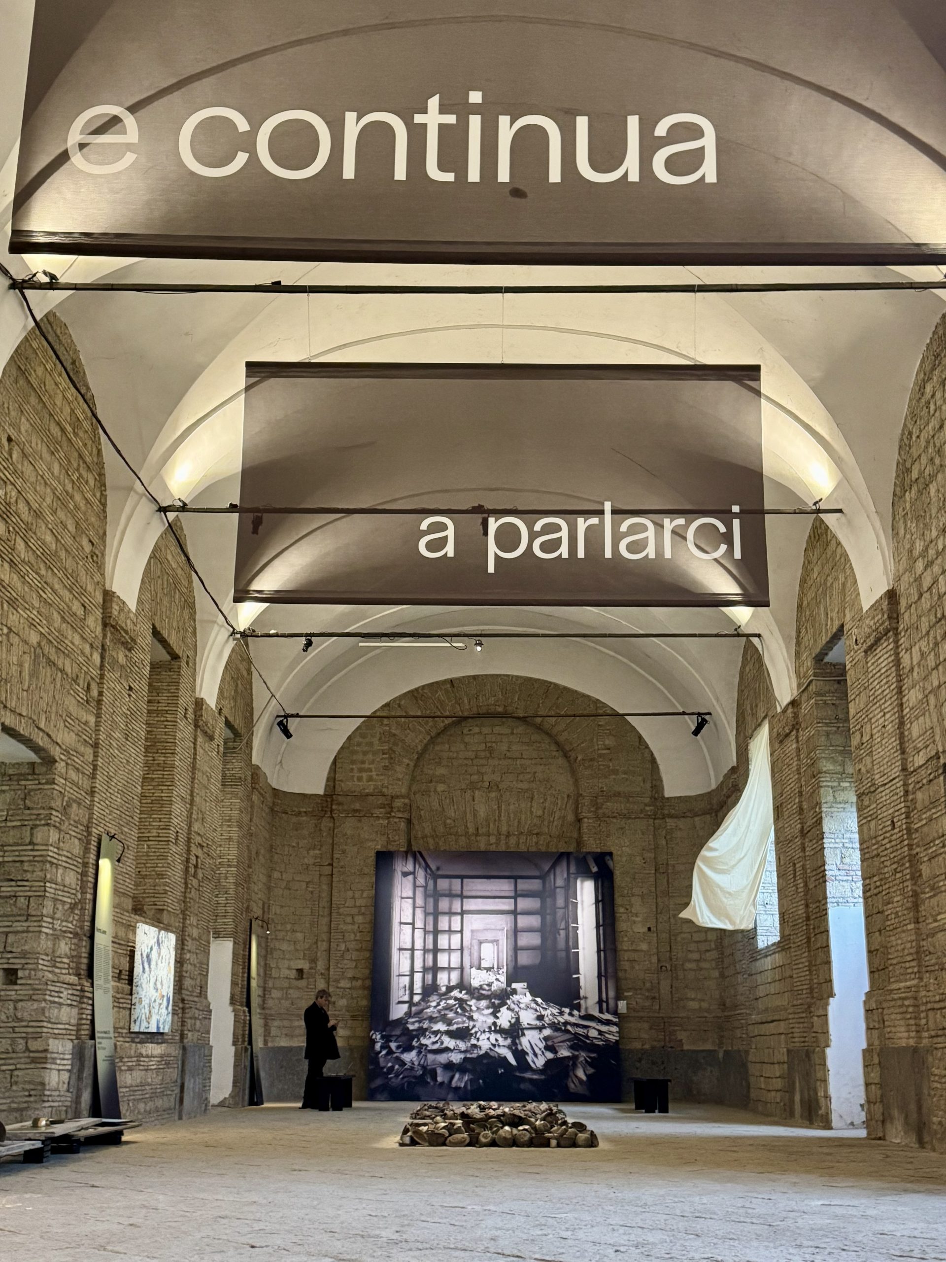 Un archivio in cammino, scandito dagli oggetti ritrovati durante i lavori di restauro in dialogo con opere di artisti del segno come Norma Jeane e Antonella Romano o maestri della fotografia come Mimmo Jodice e Luciano Romano.
