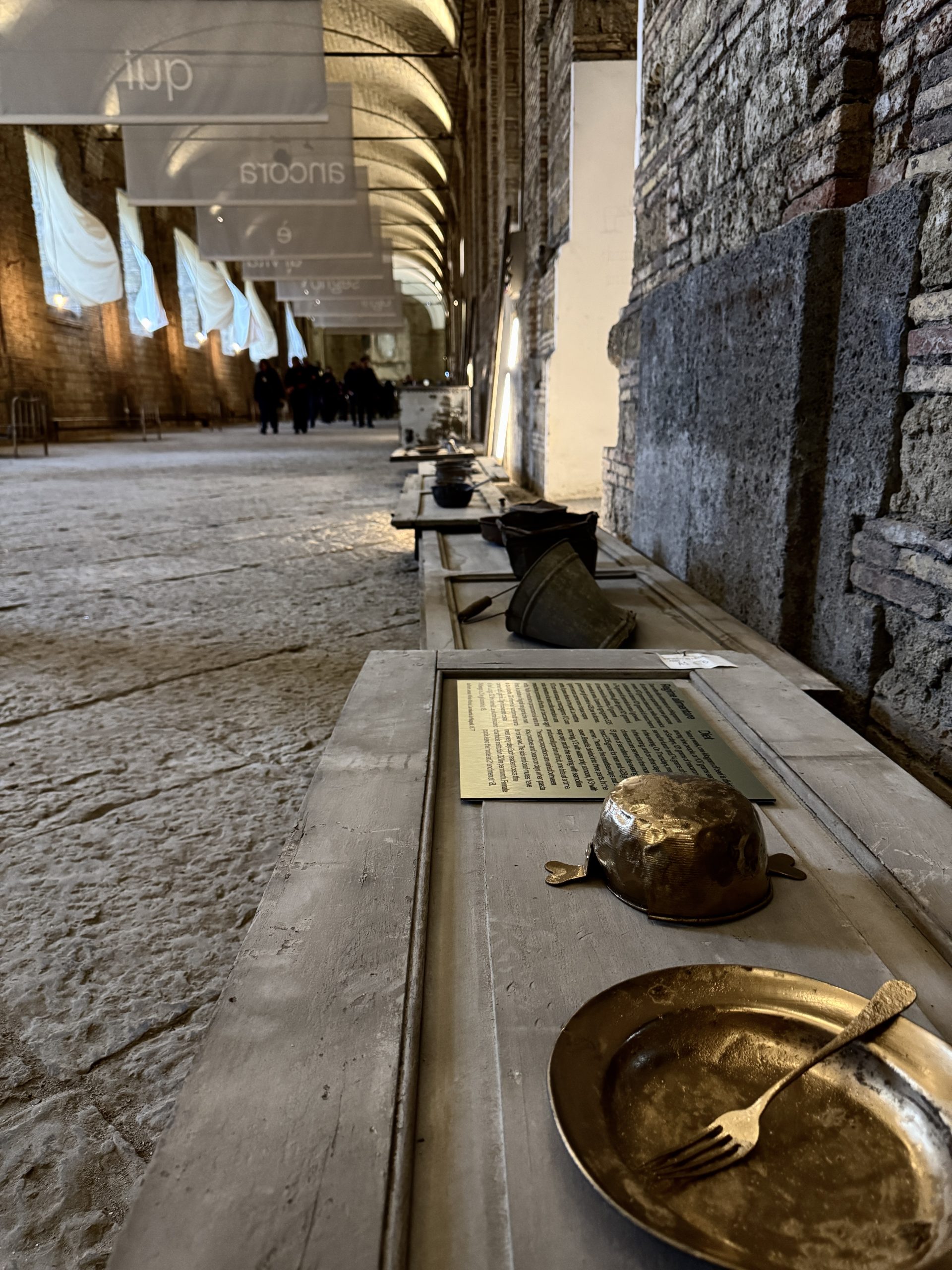 Una condivisione temporanea e preziosa di un luogo carico di storia, destinato a tornare a vivere in molti dei suoi spazi già dalla metà del 2026.Durante i lavori di ristrutturazione sono emersi numerosi reperti originali, appartenuti a chi visse tra queste mura: tracce materiali di un’umanità che il percorso espositivo valorizza e rilegge in chiave poetica e civile.