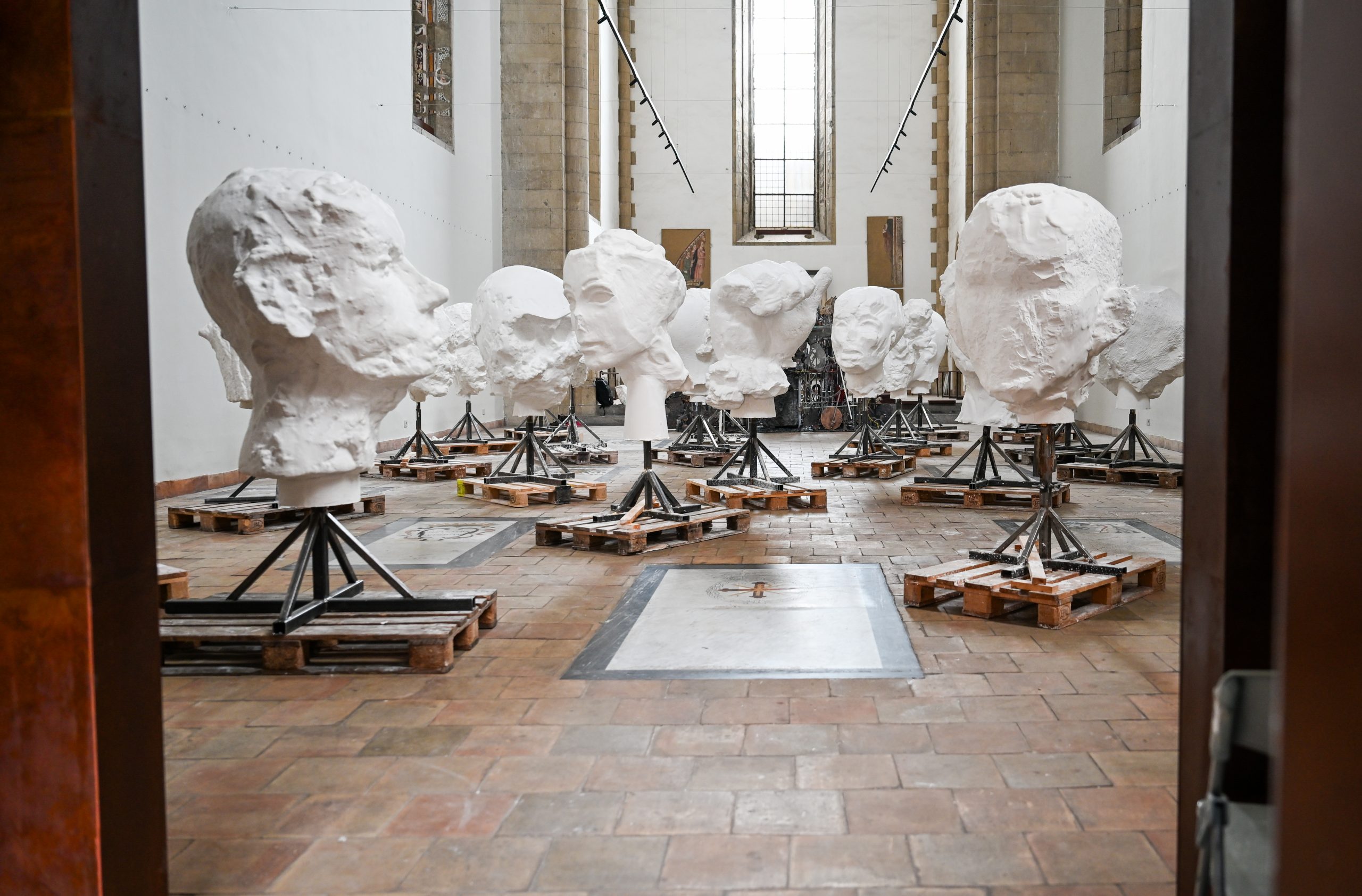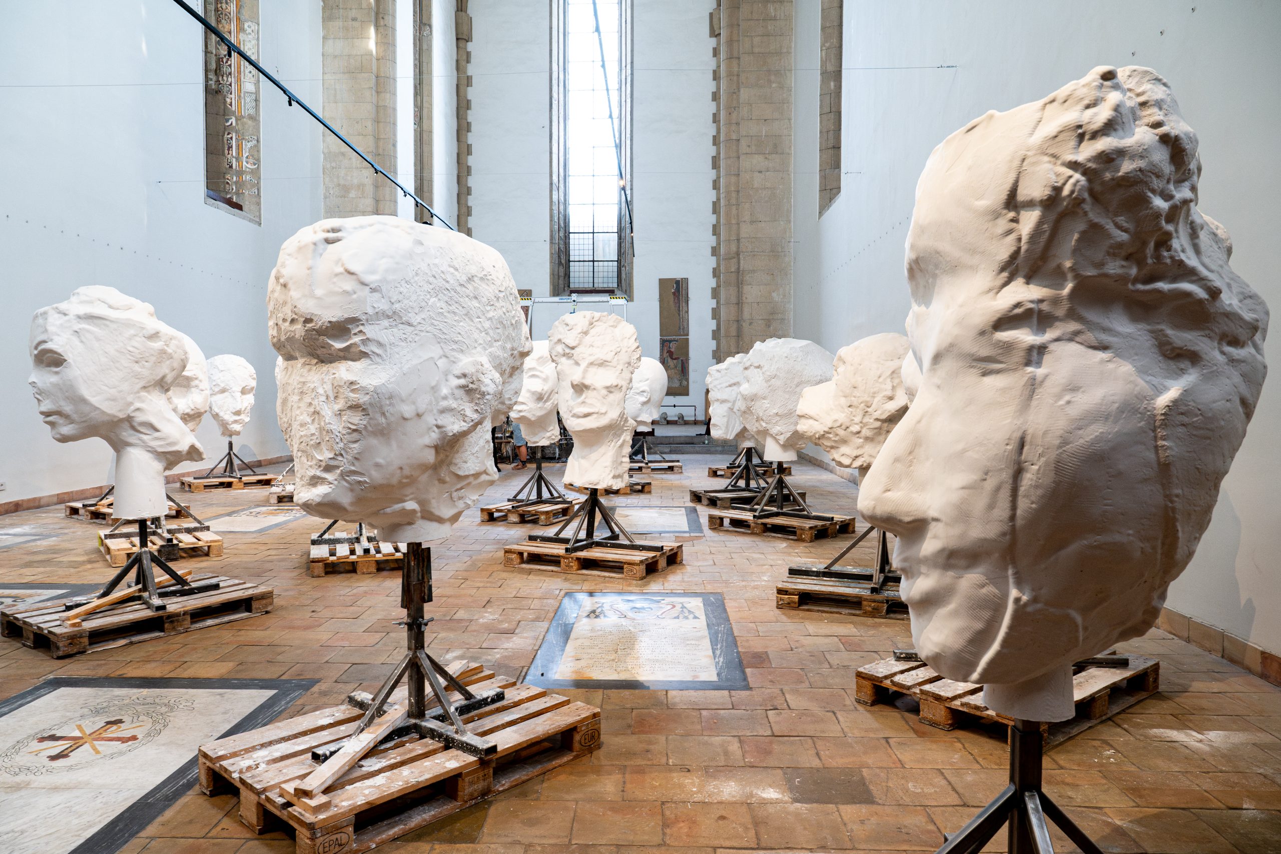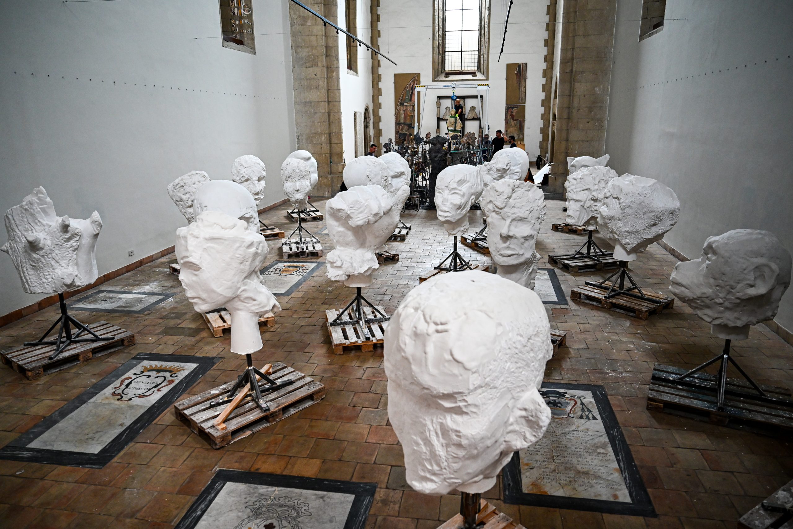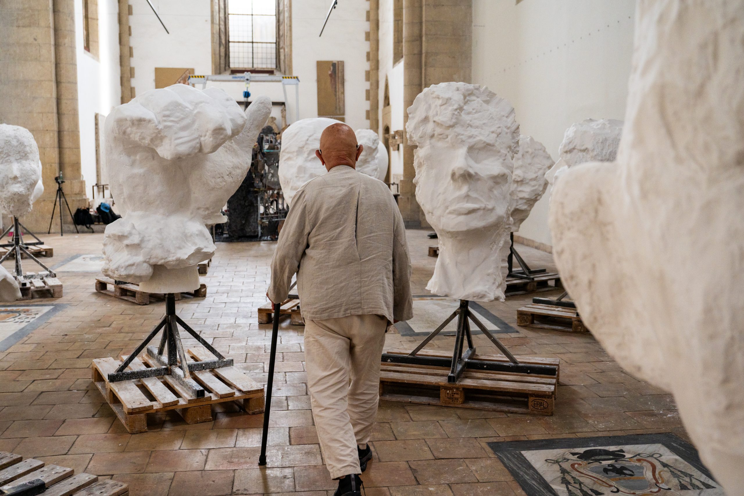 Queste teste in gesso sono state realizzate nel mio studio a San Gallo, in Svizzera, negli ultimi tre anni. Sono ritratti che ho inventato e ritratti che ho sognato, provenienti dalla storia e dal mondo antico. Ci sono anche amici perduti e frammenti della mia vita di anni fa nei boschi del Vermont. Il gesso è il mio materiale preferito per il modo in cui si sente tra le mie mani”.