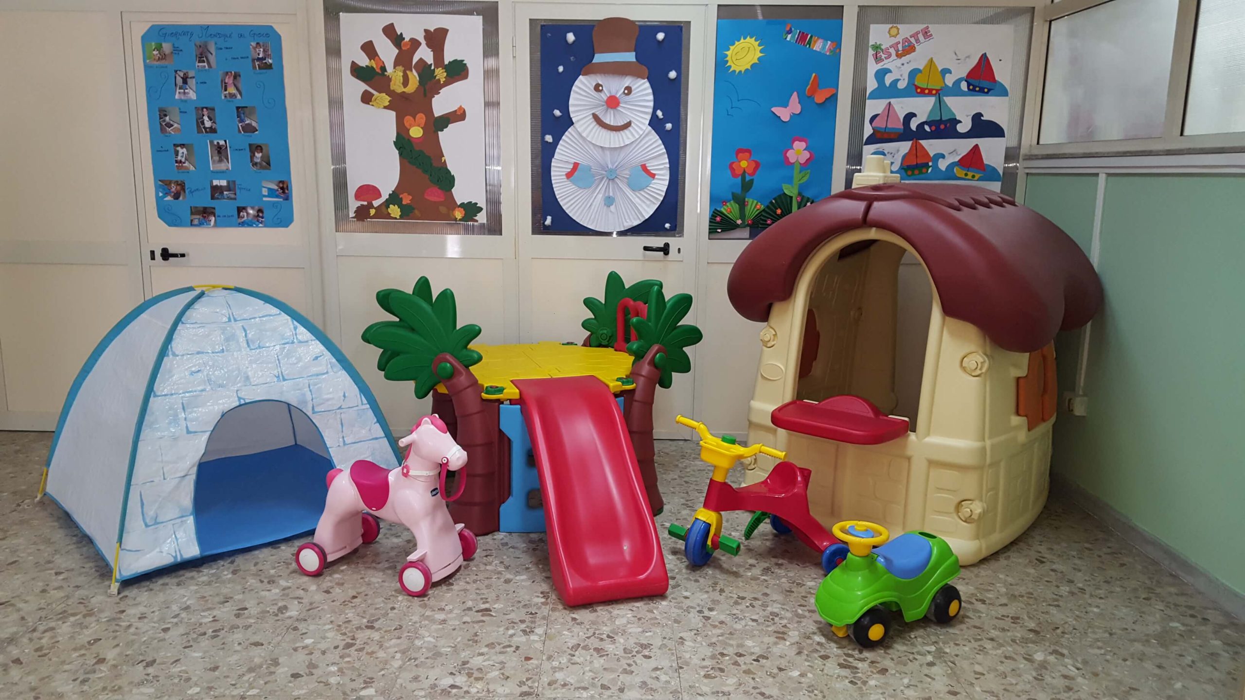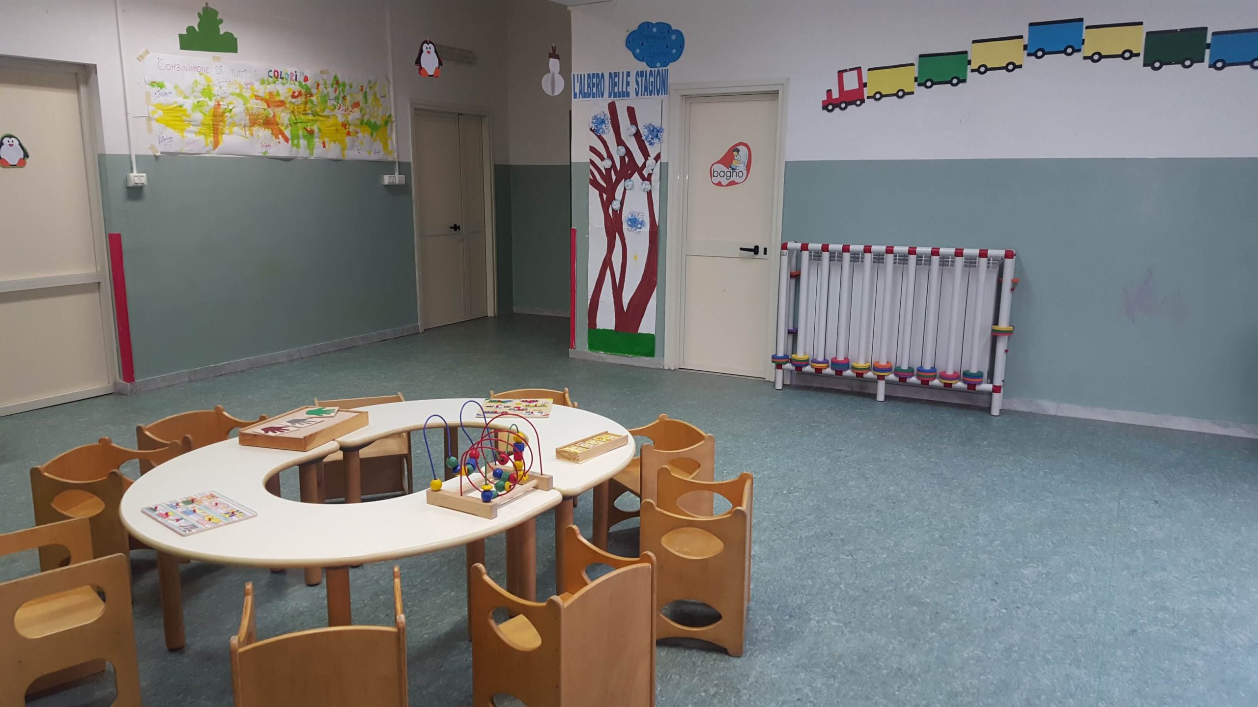 - DIVEZZI, con sala gioco-pranzo, cucina, bagno con fasciatoio, wc e lavandini su misura per i bimbi.
